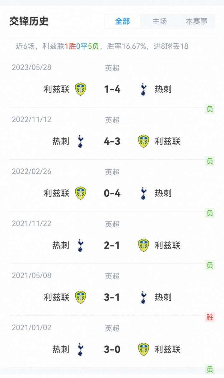 利兹联2胜2平2负积8分,排名英超第12;热刺3胜2平1负积11分,排名英超第5。